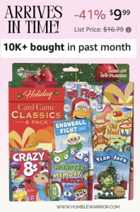 A set of six card games for kids that arrives tomorrow! It even has slap jack! I loved playing that when I was a kid… I didn’t care if I lost because it was an exclusive to beat the ever lovin’