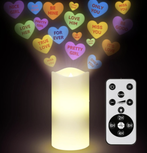 They project colorful candy-heart designs while giving off a cozy LED glow—romantic without any fire risk. With a remote and timer, they’re perfect for bedrooms, date nights, or Valentine’s décor when you want ambiance without the mess or stress. Cute, fun, and reusable way past February. Love, Cristina