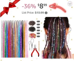 16 Color Glittery Tinsel Fairy Hair Extension Kit!