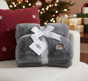 UGG Euphoria Blue Grey Plush Faux Fur Throw Blanket!