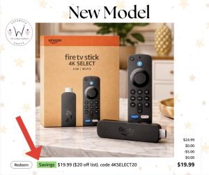 🔥 How great is this? The Amazon Fire TV Stick 4K Select (newest model) has an insane dip. All your favorite apps in one place Tap Redeem…  XO, Donna