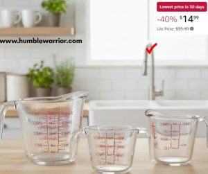 💥These measuring cups melt, mix, and reheat. Imperial and metric units sit side by side on sturdy, solid glass that ensure you can whisk, beat, and pour in the same place you measure. The Anchor Hocking Glass Measuring Cups have a 40% savings. Get the 3 piece set for $14.99!  Jeff