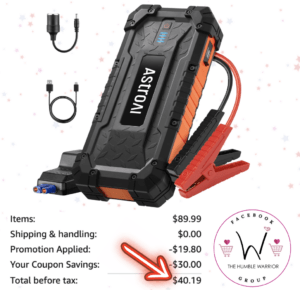 The AstroAI S8 Ultra Battery Jumper Starter is a must-have for emergencies and on-the-go convenience! With a powerful 4000A peak current, it’s capable of jump-starting engines up to 10.0L gas or 8.0L diesel, making it perfect for most vehicles. Equipped with an 88.8Wh battery, it also functions as a portable power bank, featuring USB Quick Charge and DC/Type-C ports for charging devices. Compact, reliable, and versatile, this jump starter ensures you’re always prepared wherever you go! Clip the digital q-pon and enter OPN9F6ZV at checkout to save.