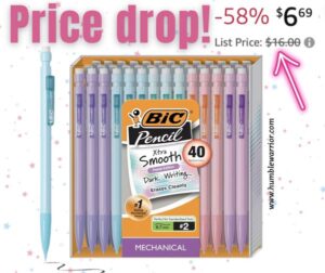The BIC Xtra-Smooth Pastel Mechanical Pencils have a big drop in the pastel colors. Regularly $16. You get 40 of them!  XO, Donna