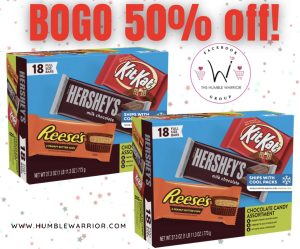 Save on the HERSHEY’S, KIT KAT and REESE’S Assorted Milk Chocolate Candy Variety Box. You get 18 in a box. Add two to the cart.