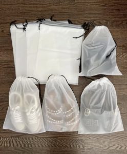 They are large enough to fit my shoes and his. Reusable with a simple drawstring pull. No more ziplock bags! A great idea for muddy cleats too. Priced as marked. XO, Donna