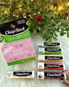 The ChapStick Cozy Comforts Lip Balm Gift Set is the sweetest little treat for stockings, gift baskets, or self-care moments. This limited-edition 6-pack brings festive flavors like Gingerbread Cookie, Candy Cane, and Spiced Apple Crumble — soft, smooth, and perfectly hydrating all season long.