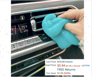 💃💃💃 #1 Best Seller! My cleaning car “slime” is back! This sucker gets every piece of debris, dirt and hair. Highly recommend for Dad’s day, new and enthusiastic car owners. No smell, no residue.  💗 Donna