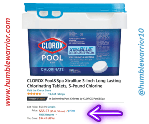 🏊‍♀️💦🏊🏻💦🏊🏼‍♂️ CLOROX Pool&Spa XtraBlue 3-Inch Long Lasting Chlorinating Tablets, 5-Pound Chlorine I know this was very popular last spring/summer and I figure it’s that time again.
