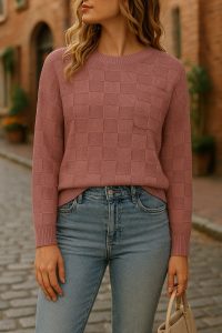 🩷🧣 The perfect blend of comfort and chic! This soft knit sweater pairs beautifully with jeans or leggings — an easy go-to for fall layering. 🧣🩷 xo, MaryJo