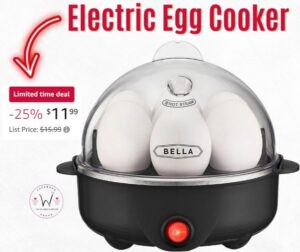 Save 25% for a limited time on the highly rated BELLA Electric Egg Cooker and Poacher! 7-egg capacity and great for making soft, medium, or hard-boiled eggs and perfectly poached eggs! Plus, its compact design makes it a space-saving addition to any kitchen. HURRY! This deal won’t last! Love, Jess