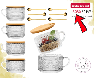 ☕💫 These vintage embossed glass mugs are absolutely gorgeous! Perfect for coffee, overnight oats, or displaying on your coffee bar—each comes with a bamboo lid and spoon for that extra touch of charm. 💫☕ xo, MaryJo