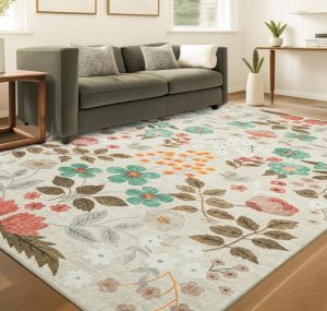 Floral Beige 5×7 Washable Area Rug!