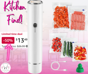 🥩🛒✨ Keep Your Food Fresh Longer! This Handheld Vacuum Sealer comes with 5 vacuum bags + a wine saver to lock in freshness and reduce waste! Grab yours for just $13.49 ($26.99 reg.)! 🍷 <3 Ashley