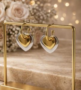 The prettiest and most unique heart earrings have a digital q-pon. I love the two tone gold vibe. XO, Donna