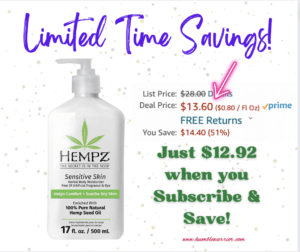 💥💥💥 Hempz fans! An incredible 51% savings on the Hempz Sensitive Skin Herbal Body Moisturizer with Oatmeal and Shea Butter! Regularly $28 and discounted to $13.60. Subscribe & Save and the price will drop to $12.92! Cancel at any time without penalty. 🤩 Xo, Donna