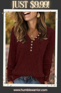 There’s just something about a soft knit and pretty buttons that feels right this time of year. This henley sweater has that cozy, effortless look — flattering neckline, comfy fit, and perfect for layering through fall into winter. XO, Donna