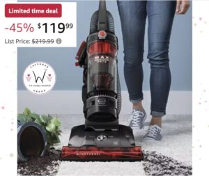 The Hoover WindTunnel 3 Max Performance Pet, bagless upright vacuum cleaner has a monster savings. Hepa filtration and ideal for carpet AND hard floors too. An excellent value on this one.