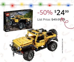 Lego fans! A BIG 50% savings on the LEGO Technic Jeep Wrangler 4×4 Toy Car set today.