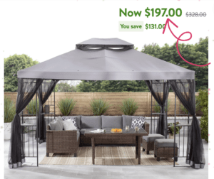 🔥 🔥 🔥 Save $131!!! The Mainstays Easy-Assembly 10 x 12 Foot Outdoor Soft Top Gazebo has a great price and it ships free. Stash it away if you can’t use it now. It’s an amazing off-season score. 💗 Donna