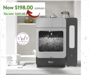 The Orgo Products The Sonic Countertop Ice Maker has a huge drop in price today! If you’ve seen it on Tik Tok and Insta and have been waiting for it to go on sale, now is your time. Yes, a 33lb ice maker is $198 and it’s great price.