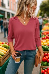 Flowy, feminine, and so easy to style — this pleated blouse drapes beautifully and feels effortless for work or weekend plans. The soft V-neck and light fabric give it that polished yet relaxed look we love for fall. Reg. 20. XO, Donna