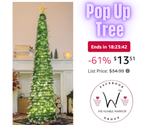 🎄✨😱 This price is unreal!! Perfect for offices, dorms, or small spaces — this 5FT pop-up Christmas tree is the easiest way to add instant sparkle! The shimmering tinsel, snowflake ornaments, and warm LED lights give major festive vibes without the setup stress. Bonus: built-in timer and 8 light modes! 🎁🌟💫 XO, Maire