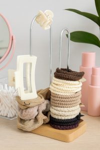 🤎💫 Such a simple but genius way to keep scrunchies and clips organized! This holder keeps everything in one spot and looks cute on a vanity or dresser too. 💫🤎 xo, MaryJo