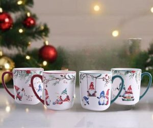 Set of 4 Christmas Gnome Ceramic Coffee Mugs!