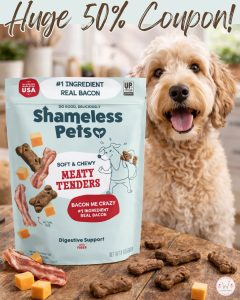 🌟🌟🌟 HUGE 50 off coupons on Shameless Pets treats! 🐶🥓 Soft, chewy, and made with real bacon dogs go absolutely wild for. A feel-good treat that works for little pups, big dogs, and everyone in between. Lots of varieties available. Clip the coupon to save at checkout! Love, Jess