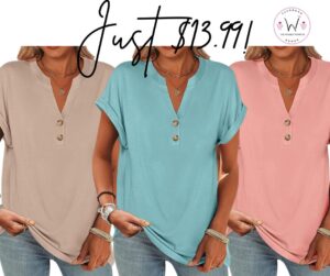 have a crazy price drop! Grab any of these beautiful V Neck Casual Shirts for just $13.99! I need one in every color!