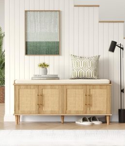 🪑✨🏡 Nice dip on this beautiful storage bench. Love the rattan detail with hidden shoe storage and a comfy cushion that works perfectly in an entryway, bedroom, or living space. xo, Cheryl