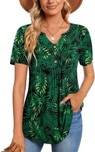 Only $9.99! – Great price on this super cute top! The CATHY Women’s Short Sleeve Tunic features a flattering pleated design, V-neck with buttons, and comfy fit—perfect for casual days or dressing up a bit. A versatile closet staple!