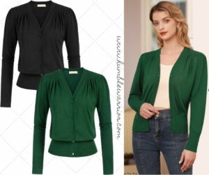 Belle Poque V Neck Cardigans!! This sweater is perfect for the office or classroom. Lightweight & soft. Lovely ruched detail on the shoulders. Sizes Small to XXL.