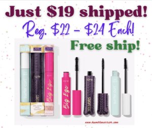 TONS of tarte beauty goodness with 70% off savings today!ย Wait, what!?! The tarte merry mascara must-haves THREE pack is just $19 shipped. That is INSANE! EACH one is regularly $22 – $24!! You get free sipping too. Each one is individually boxed too. XO, Donna