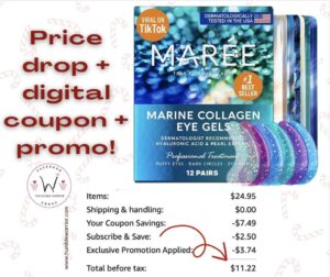 The Tik Tok viral MAREE Eye Gel Pads are back with the best price I’ve seen to date! I’ve been waiting for this one. Hydrate the delicate under eye skin and nourish it too. Clip the digital coupon, Subscribe & Save and hit REDEEM under the price to save. Cancel once it arrives without penalty.