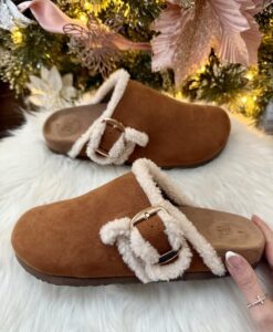 Time and Tru Women’s Faux Shearling Cozy Buckle Clogs