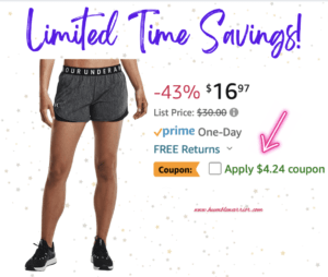 An awsome savings on the Under Armour Women’s Play Up Short in this color. Be sure to clip the digital Q-pon to save! Xo, Donna