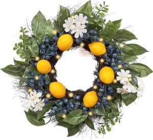 Valery Madelyn spring wreath is decorated with artificial lemons & berries to decorate your doorway or use as a centerpiece on your table!