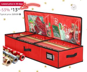 This Premium Wrapping Paper Storage Organizer is perfect for all your paper, ribbons, bows and more. Heavy duty with zipper closure keeps all your materials secure and easy to access. Can be conveniently stored in the closet, under bed, basement, garage and more. XO, Alla