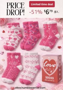 Cozy sock lovers! A set of five Valentine’s Day socks with a big mark down. I love these for teens and tweens. It’s a fun one to send to the dorm too. XO, Donna