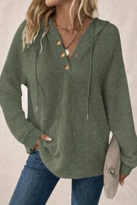 These are a fave of mine because it’s such an easy throw on when you want to feel comfy but still look put together. The waffle knit texture with the v neck and button detail gives it that relaxed but styled feel that works for errands or lounging.🧶✨ xo, MaryJo