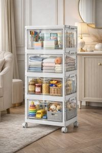 These portable storage bins are a huge home and dorm helper. Modular, folding with wheels. XO, Donna