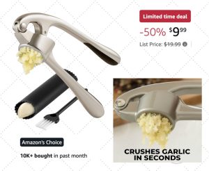 Designed with a comfortable ergonomic handle that requires minimal effort on your wrists and hands to peel, crush, and mince the cloves in one go; yielding delicious garlic paste while the peels stay in the chamber. Jeff