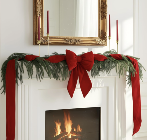 With lush cedar-style greenery, a bold red velvet bow, and elegant ribbon details, it’s perfect for dressing up your mantel, fireplace, or dining table. A timeless touch of festive luxury that instantly elevates any space. ![]()
