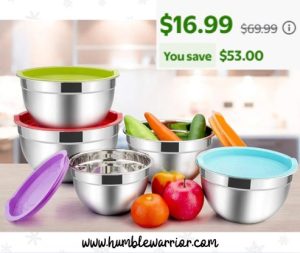 The Vesteel Mixing Bowls Set is constructed by commercial grade stainless steel, which is shatterproof, dent and rust resistant. The thoughtful design is their flat bottom and airtight lid, they are perfect to prevent bowls slipping and wobbling and keep the food seal airtight. Jeff