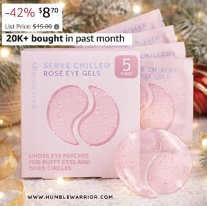 The Patchology Serve Chilled Rosé Under Eye Patches are back with a 42 perc drop. They are stellar for puff and discoloration! XO, Donna