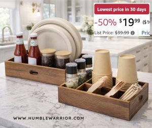This set of 2 party supply holders keeps plates, napkins, forks, spoons, and cups neatly corralled on your counter or buffet—clean, organized, and ready for guests. 50 perc off. XO, Donna