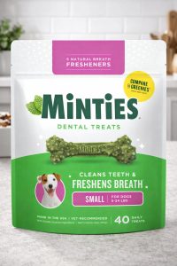 Designed to freshen breath and promote dental health, Minties are crafted with 5 natural breath fresheners—peppermint, parsley, fennel, dill, and alfalfa. Jeff