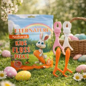 set of 100ct biodegradable bunny and carrot flossers